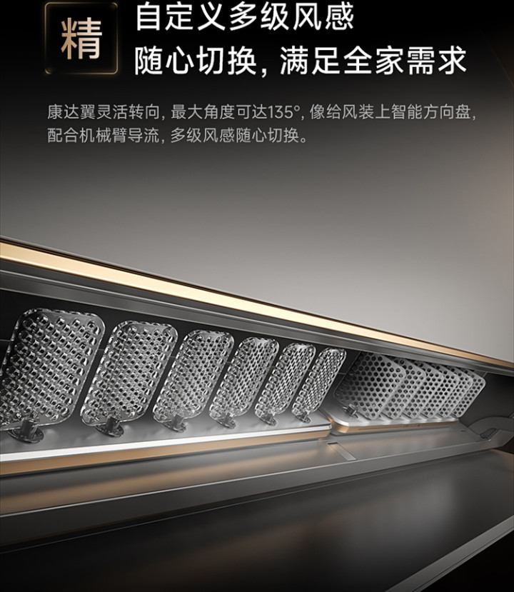 传统空调的导风板结构简单、角度固定,送风范围有限,也容易直吹人体。而追觅双机械臂空调带来的,是一套堪比“机器人”的精密风控系统。